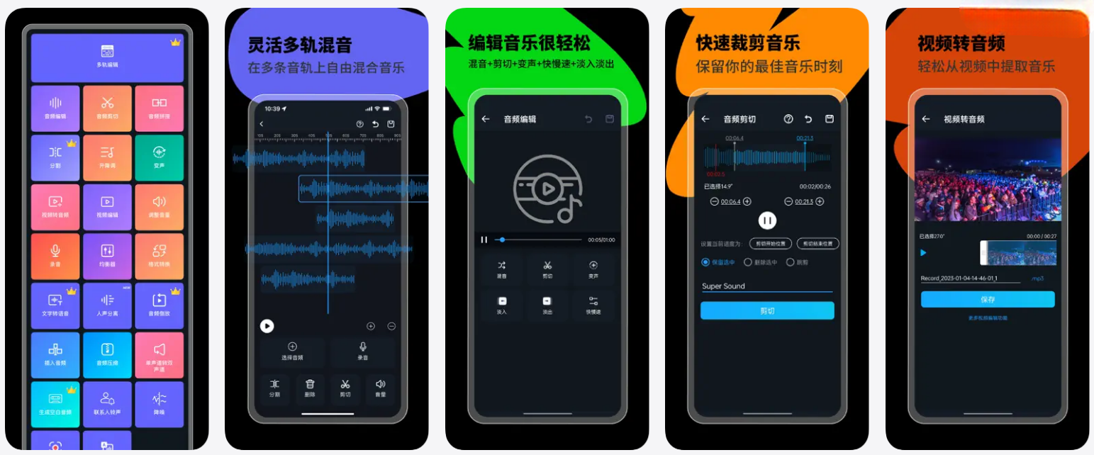 超级音乐编辑器是一款功能强大的音频编辑器。 它支持音频编辑、剪切、拼接、混音、格式转换、语音转换、视频转音频等功能。 专业的音频编辑器,帮你轻松制作铃声,快来创作属于你的音乐吧!零门槛快速上手,一键即可编辑音频! · 功能齐全,一个APP即可满足绝大部分需求! 毫秒级完美切割,精准快速 · 支持多次剪切并保存最终作品 · 可以选择保留音频的中间,或保留音频的开头和结尾