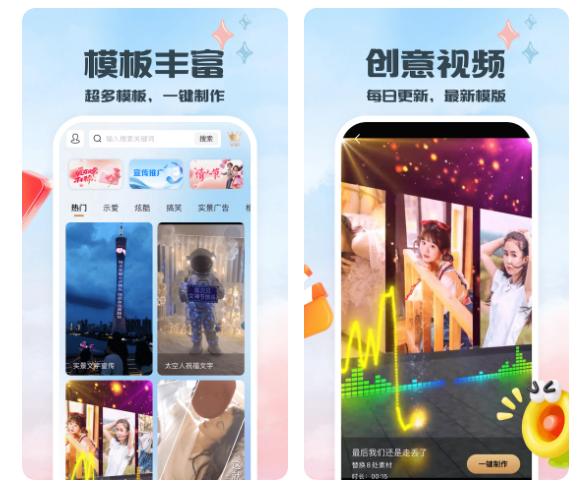 片头App内置3D特效与动效设计,通过设计师的精细调整,打造沉浸式的特效体验。一款专为手机用户打造的视频制作工具,让零基础用户也能轻松创作高品质视频。它集海量模板、3D特效、高清输出于一体,涵盖表白、婚礼、宝宝成长、产品宣传、情感表达等多种场景。只需简单操作,即可将照片和视频素材一键生成专业级视频短片。