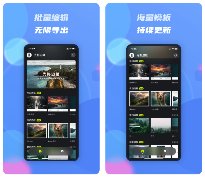光影边框是款实用的摄影软件,它可以使你的照片变得更加精致,这里有丰富的魔板,你可以自定义添加相框和滤镜等。用户可以加上专属水印,防止其他人乱用。它能批量处理多张图片,快来下载吧。原图导出,自由掌控 在个人中心,您可以根据需求自行调整要导出的图片质量,无论是选择自适应以适应不同场景,还是追求完美的原图品质,都由你说了算!